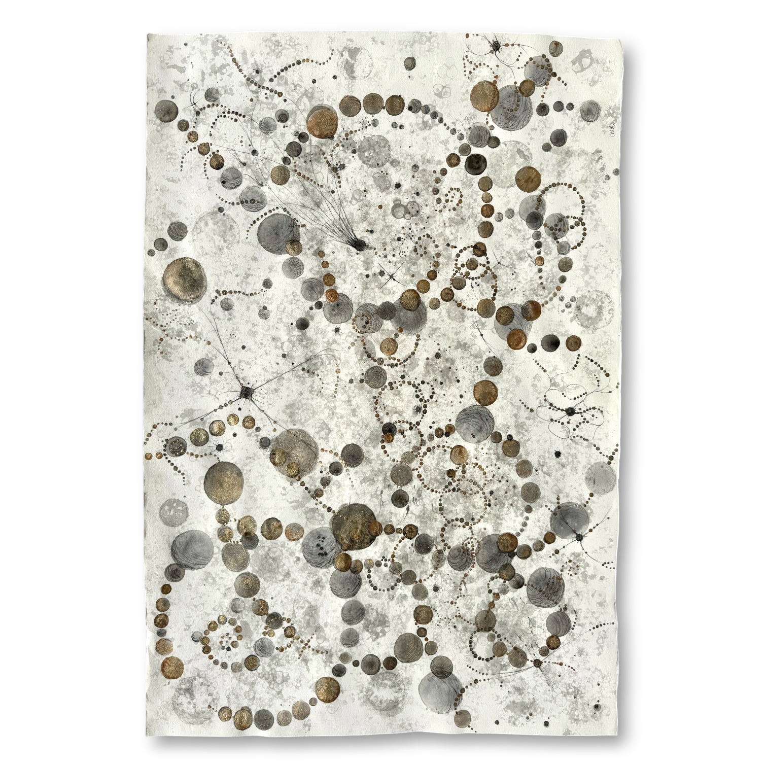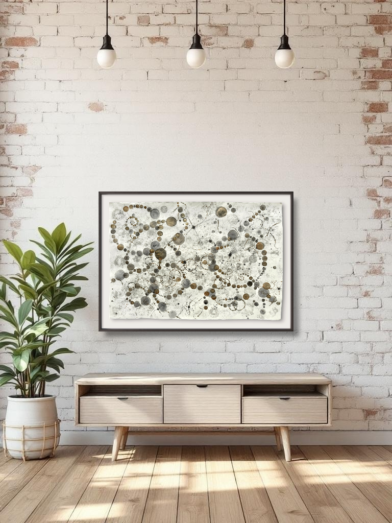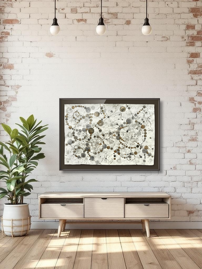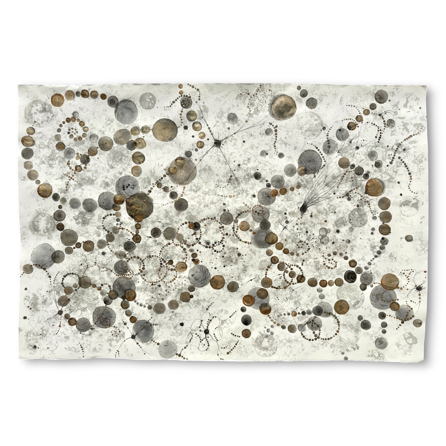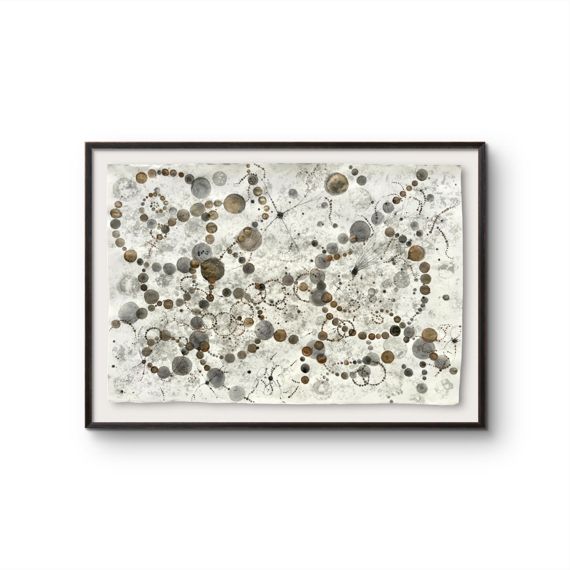 Oramad. Arkets storlek 76 x 112 cm. Akvarell, svart i olika toner och guld. Tavlan kan hängas stående och liggande vilket gör att den passar i många miljör.