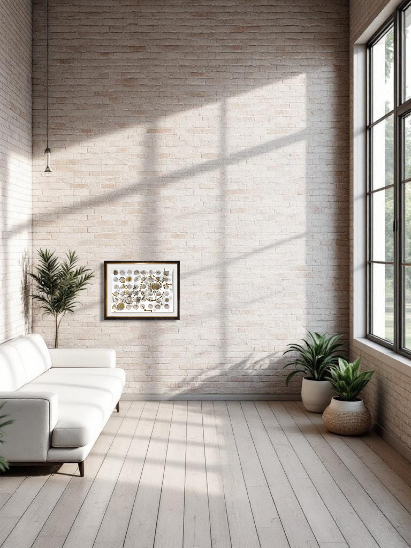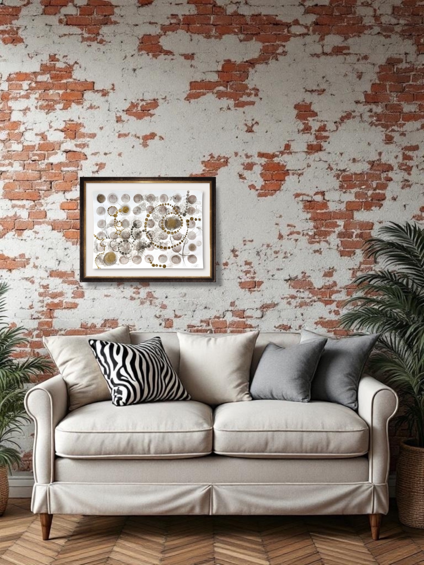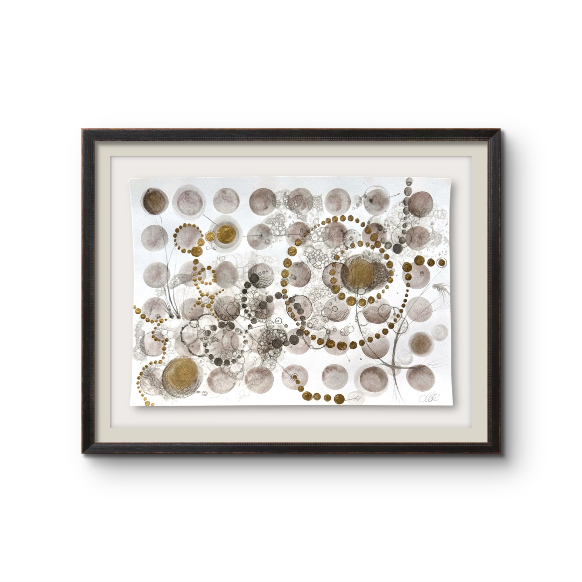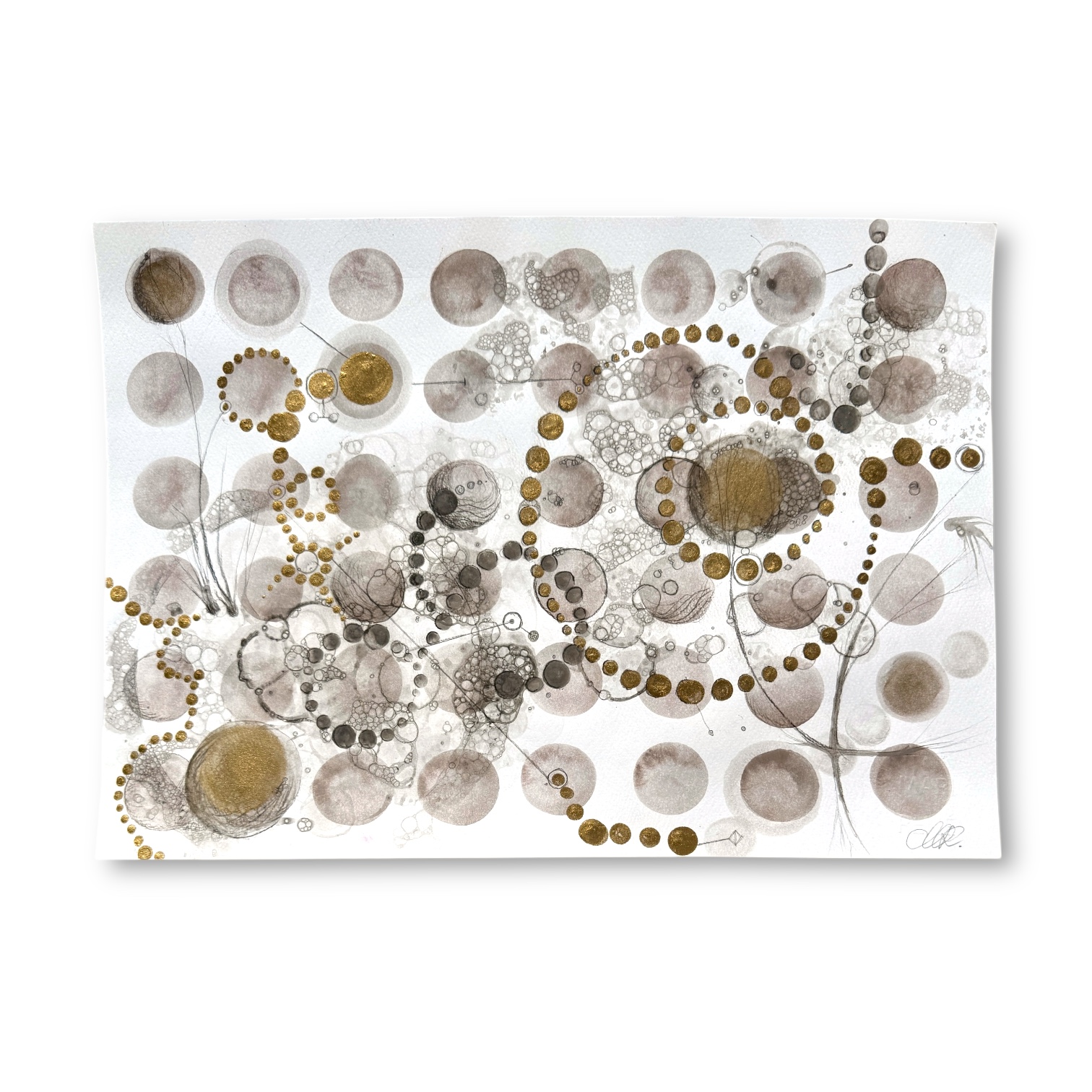 Oramad. Arkets storlek 42 x 29 cm. Akvarell, svart i olika toner och guld. Tavlan kan hängas stående och liggande vilket gör att den passar i många miljör.