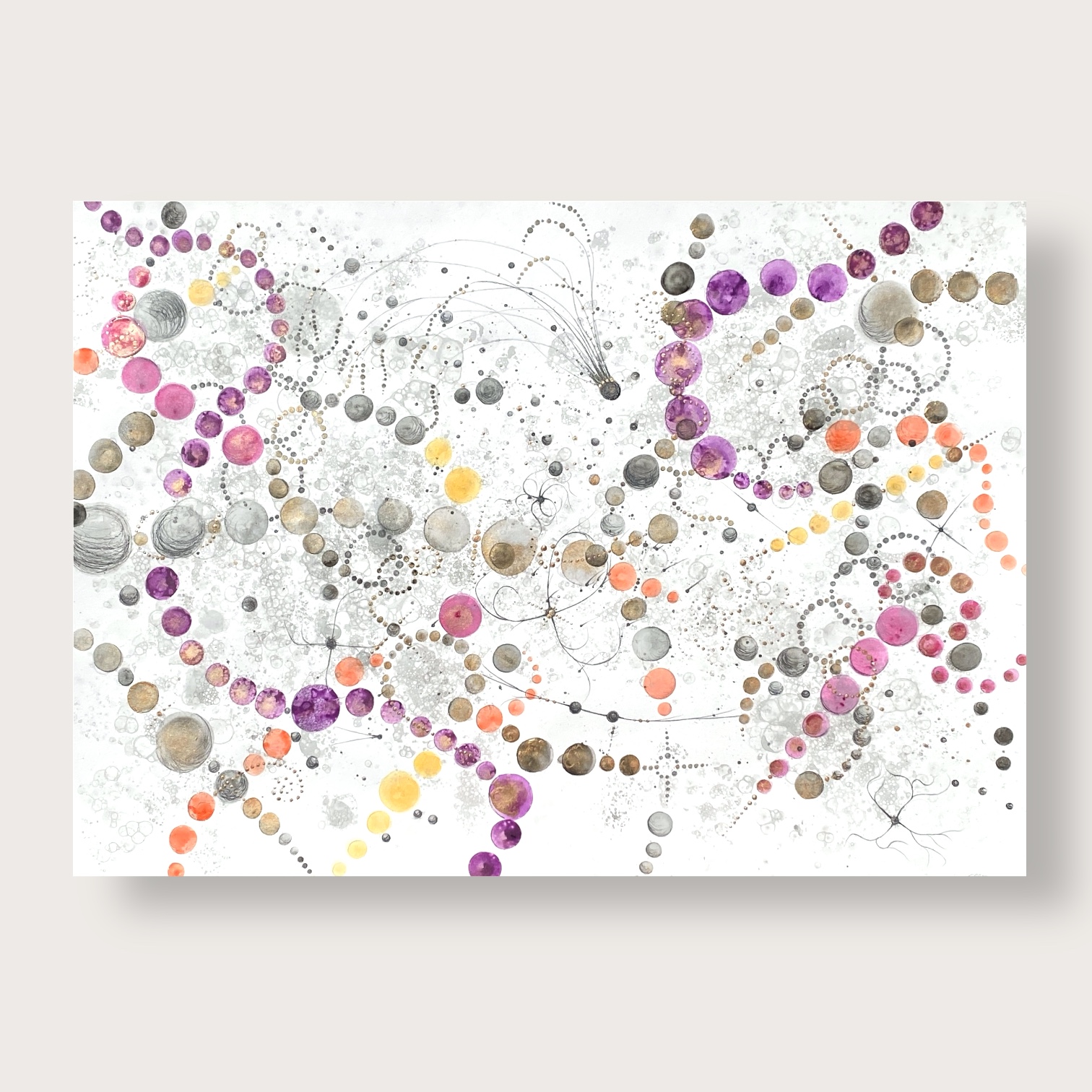 THE SPACE MY WAY 1/2024 är ett original konstverk skapat med akvarell och guldfärg.Alla original tavlor har sin egen lilla historia. Denna tavlan gjorde jag med inspiration från de vackra hibiscusblommorna på Gran Canaria.Lila, gult, orange gifter sig perfekt med guldet och tavlan glittrar av sig själv.