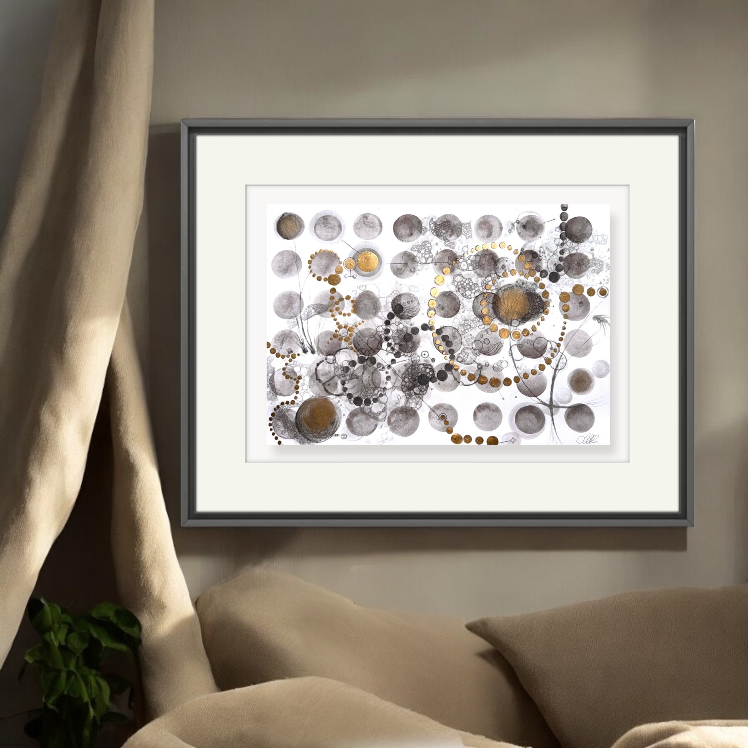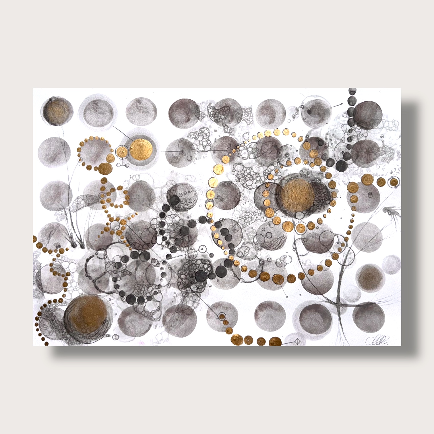 potpurri of dots. Akvarell och guldfärg. Ingen ram. 29 x 42 cm.
