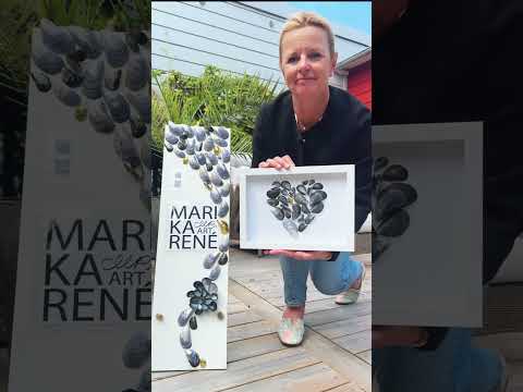 Jag har arbetat med en alldeles egen teknik för att skapa dessa blåmusseltavlor. Jag älskar hur blåmusslorna skapar en alldeles egen lyster och magi på en vägg.